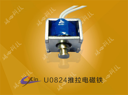 U0824推拉電磁鐵采用扁型的結構設計,顯著的特點是體積小,行程小、力量大。磁心科技大批量生產U0824框架電磁鐵,產品結構可做成推式和拉式兩種結構,如果您需求的產品和這