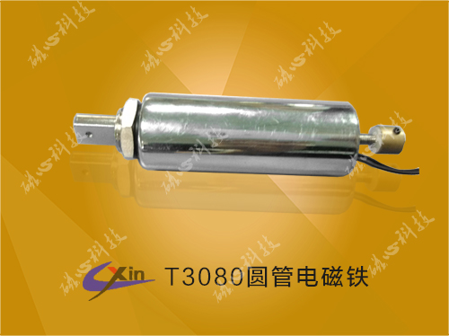 T3080是磁心科技電磁鐵廠家雙向做功的一款推拉式電磁鐵,體積小、行程大、方便安裝。